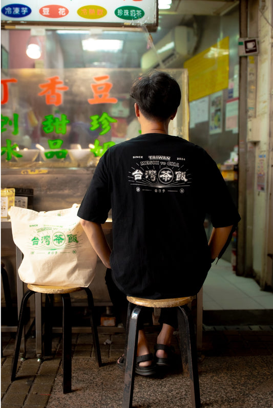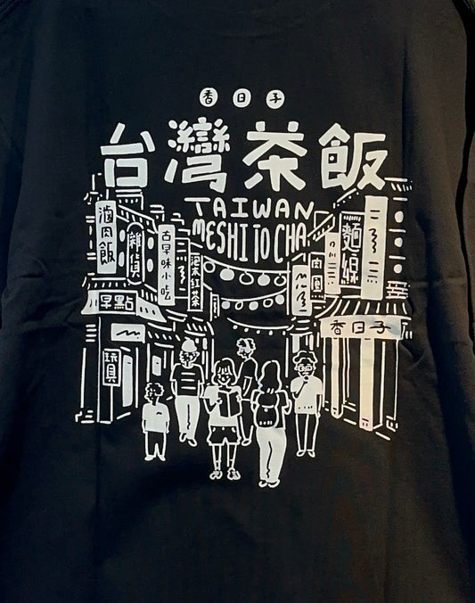 【香日子】TAIWAN Meshi to Cha 台湾茶飯 半袖 老街(ラオジェ)T ブラックTシャツ