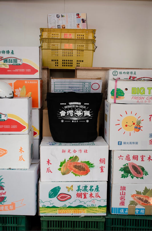 【香日子】TAIWAN Meshi to Cha 台湾茶飯 オリジナルトートバッグ 黒x白
