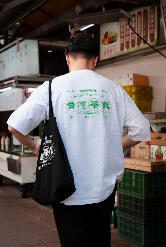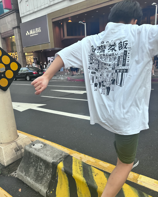 【香日子】TAIWAN Meshi to Cha 台湾茶飯 半袖老街(ラオジェ)T 白Tシャツ